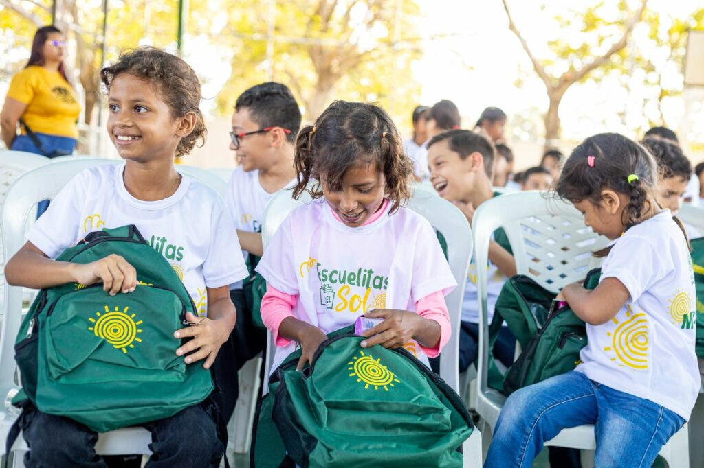 Durante la actividad los 272 niños recibieron como uniforme una franela que los identifica como estudiantes de las Escuelitas del Sol y un kit escolar compuesto por un bolso que incluye cuadernos, lápices, borradores, sacapuntas, crayones, reglas, pegamento y tijeras.