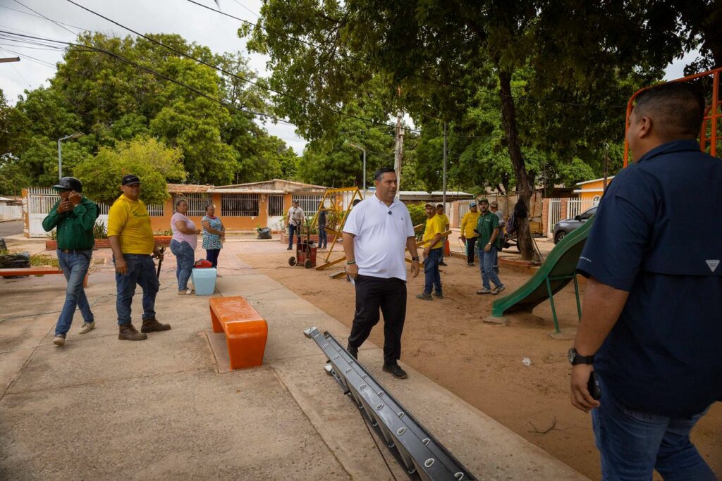 La jornada del 22 de mayo incluyó el abordaje de la plaza Alicia Pietri de Caldera, del barrio Los Robles. Este espacio, el Servicio Desconcentrado de Plazas y Parques (SEDEPAR) intervino con mantenimiento integral, poda, pintura, restauración de luminarias, entre otros trabajos que van a beneficias a más de mil personas que viven en los alrededores de la plaza.