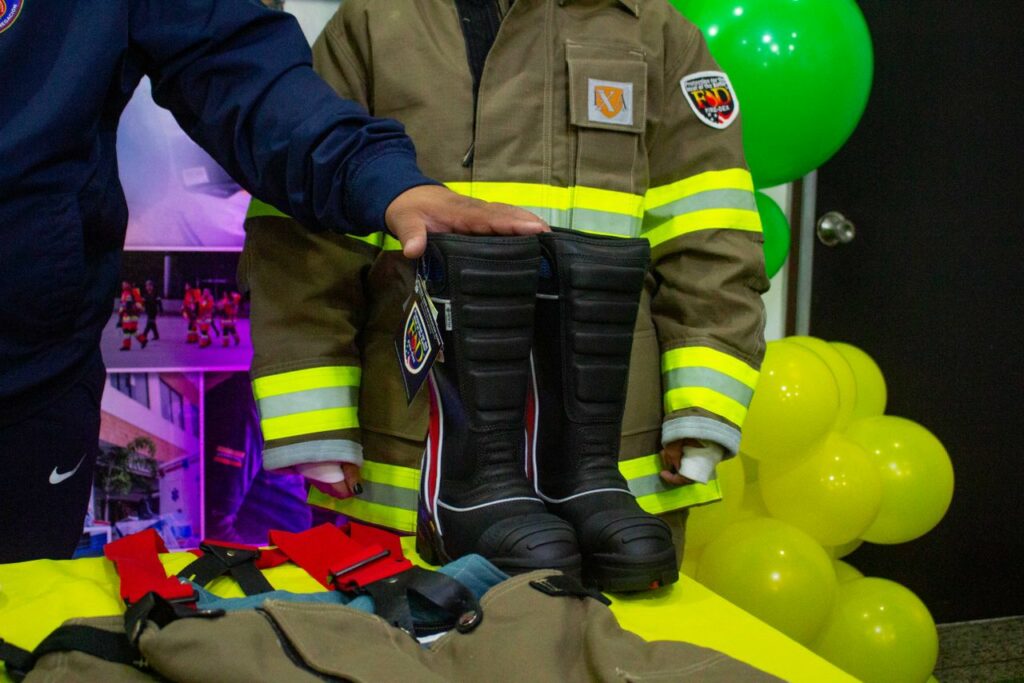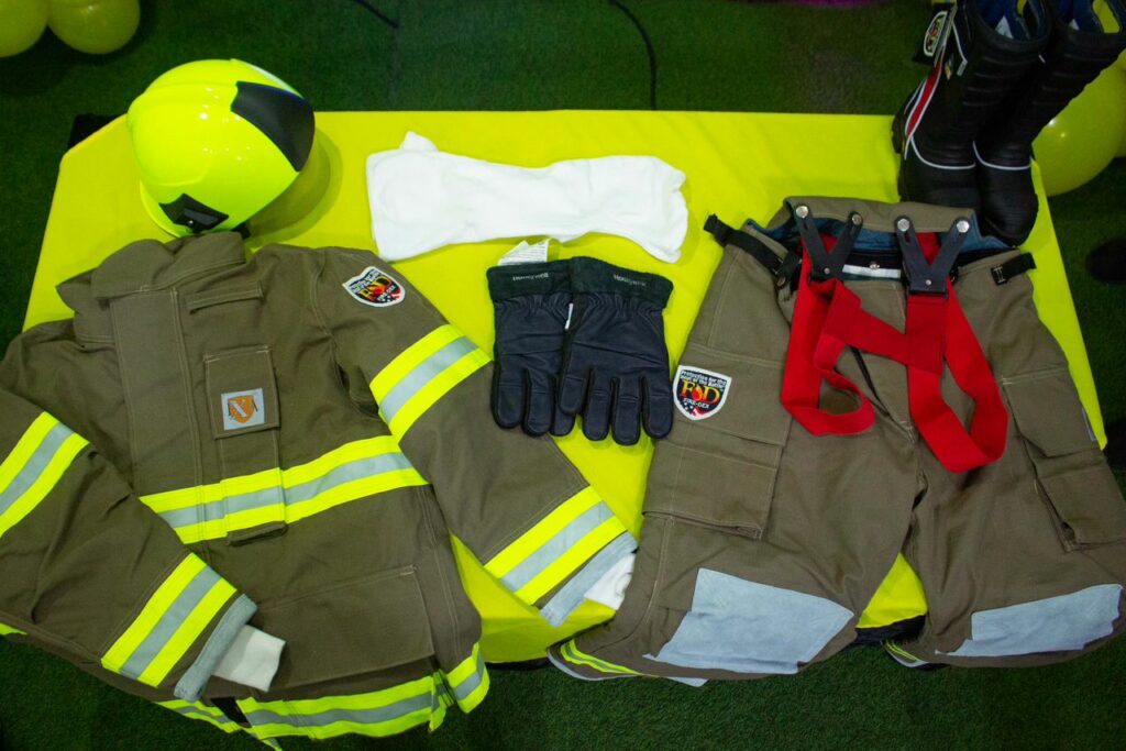 Los kits entregados al Cuerpo de Bomberos constan de seis componentes: casco, conjunto de chaquetón y pantalón, guantes, botas y monjas ignífugas