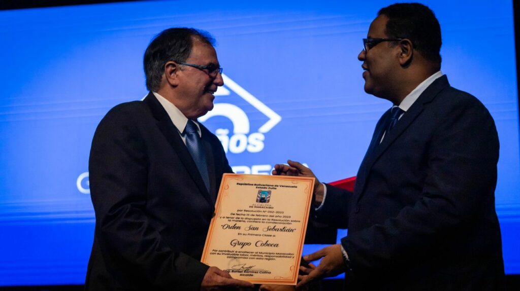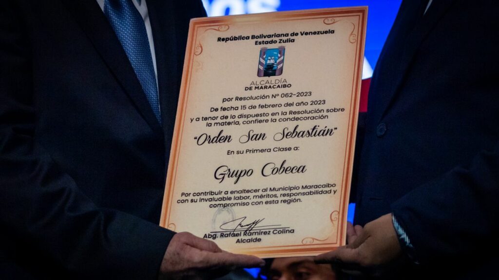 Para reconocer los 115 años de su trabajo ininterrumpido en el país, la Alcaldía de Maracaibo otorgó la Orden San Sebastián al Grupo Cobeca, en el marco de su aniversario celebrado en el Teatro Bellas Artes con presencia de empresarios y reconocidas personalidades de la ciudad.