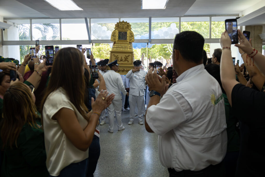 Con oraciones, gaitas y danza, la Alcaldía de Maracaibo recibió la visita de la imagen réplica de Nuestra Señora del Rosario de Chiquinquirá (Chinita), a pocos días de su retorno a la Basílica.