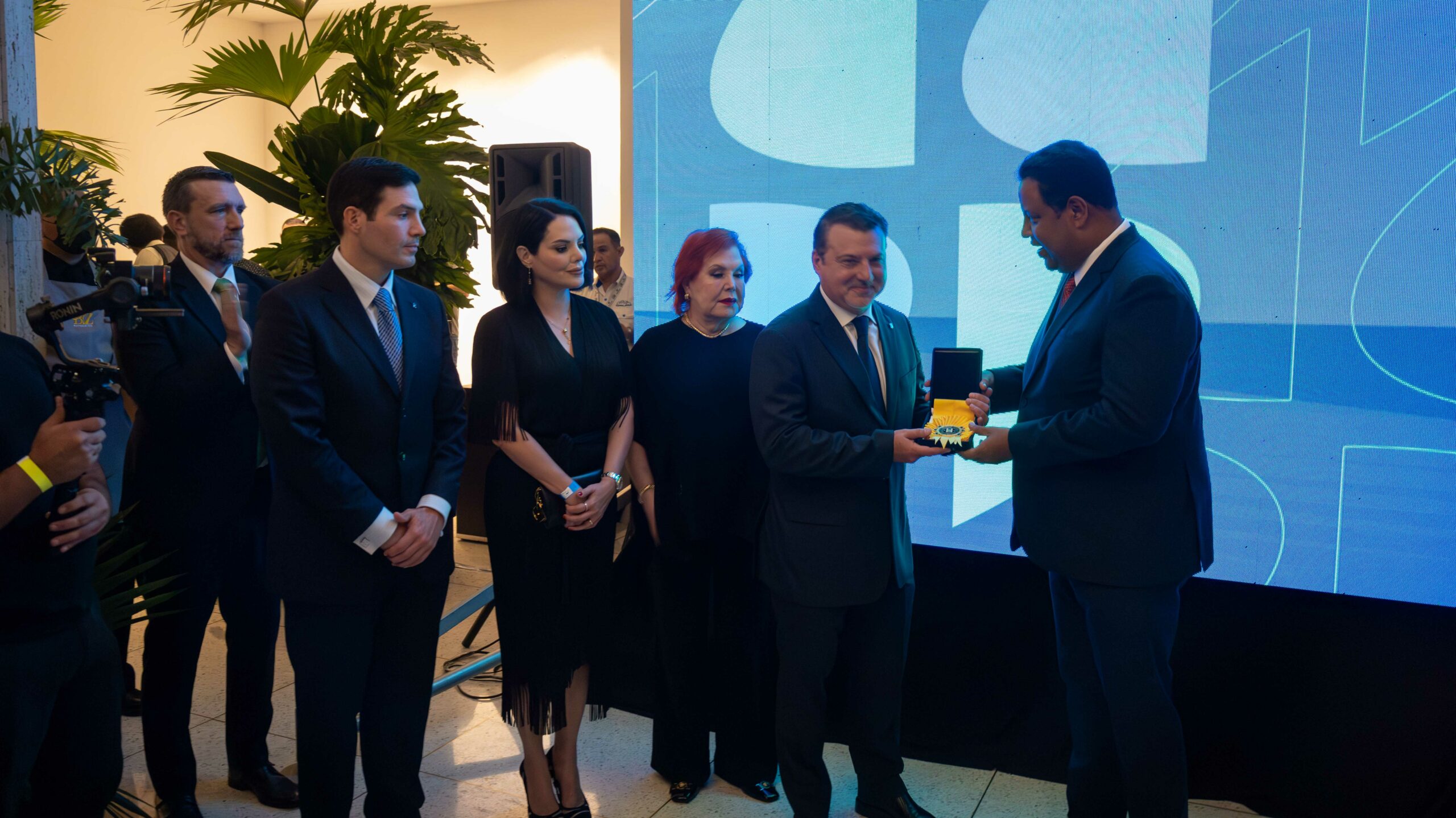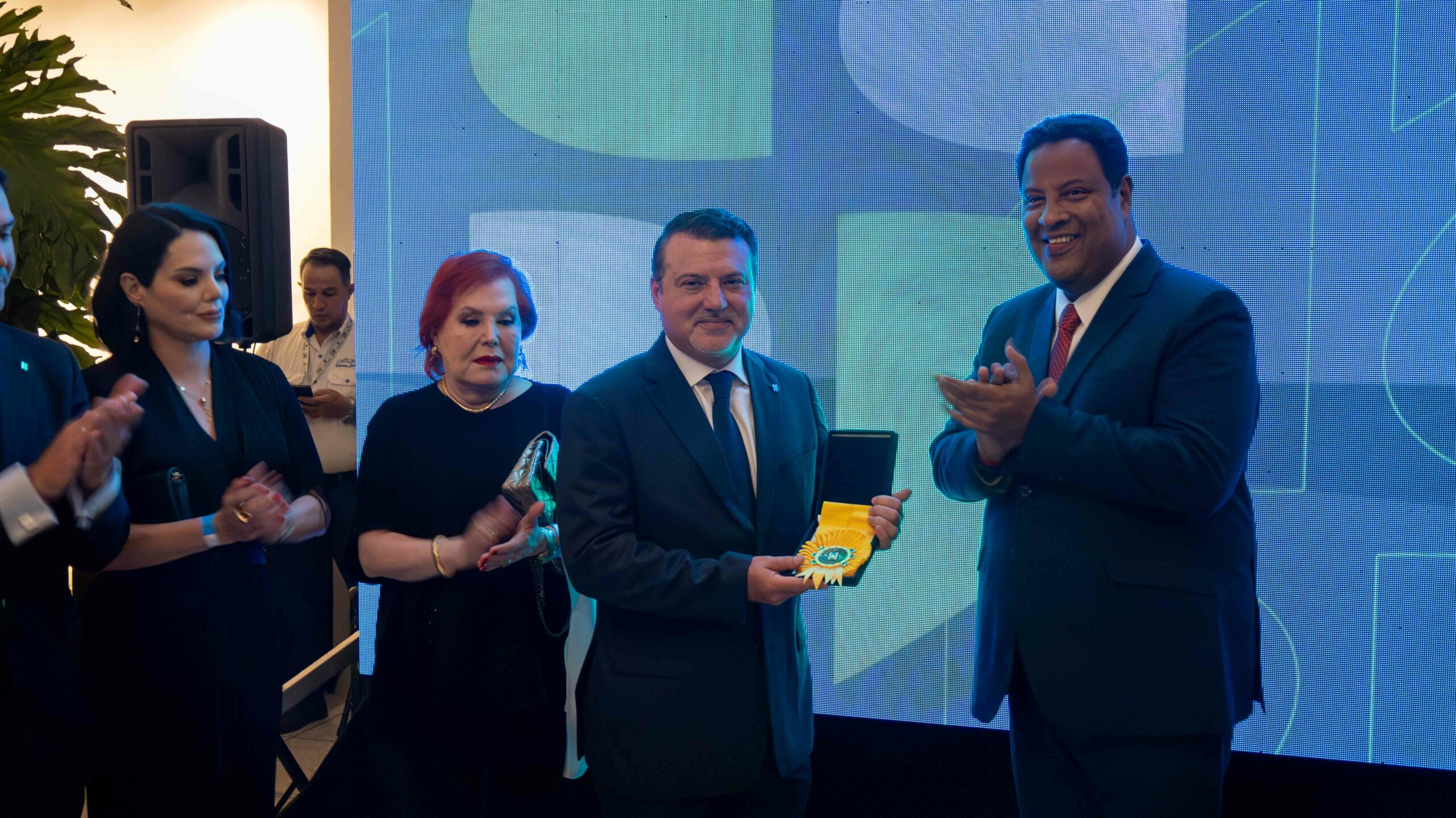 Asimismo, el tren directivo del Grupo conformado por su presidente Wilmer Pérez, el vicepresidente, Luis Pérez y la directora general María Pérez, recibieron por parte de su madre María Teresa Llavaneras de Pérez, el botón que recibiría su padre por los 80 años del Grupo San Simón.