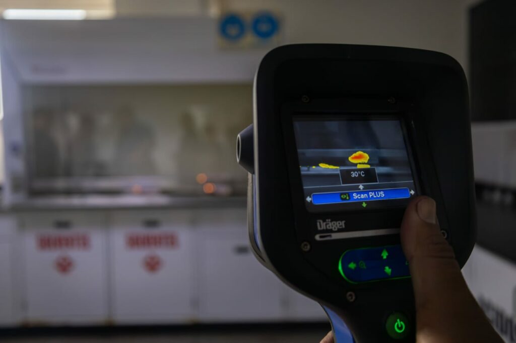 “Este aparato también es útil para determinar si un incendio fue provocado por materiales sólidos, líquidos o gases inflamables basándose en el nivel de pH del material, lo que nos ayuda a decidir cómo debemos proceder”, aportó Atencio.