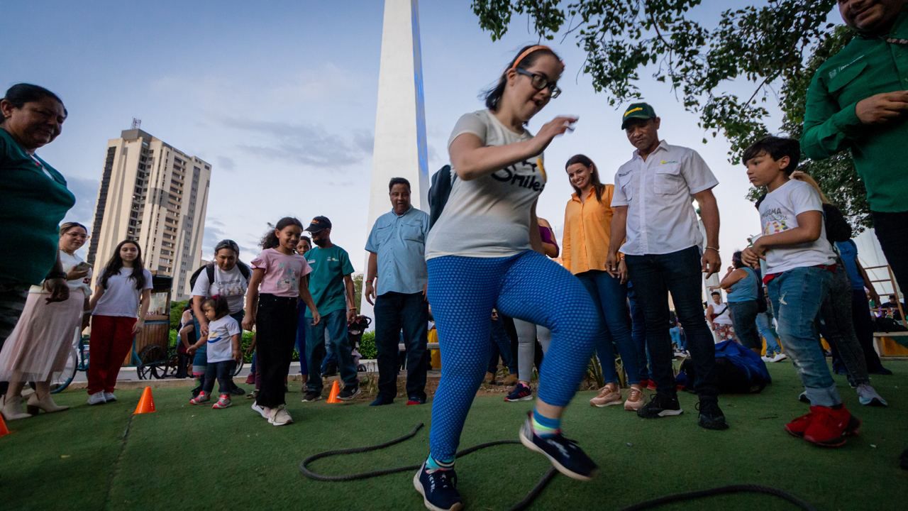 La Plaza de la República en Maracaibo, fue el escenario de las divertidas actividades para homenajear a niños con Síndrome de Down, organizadas para esta celebración que culminó con el encendido en azul y amarillo del obelisco.