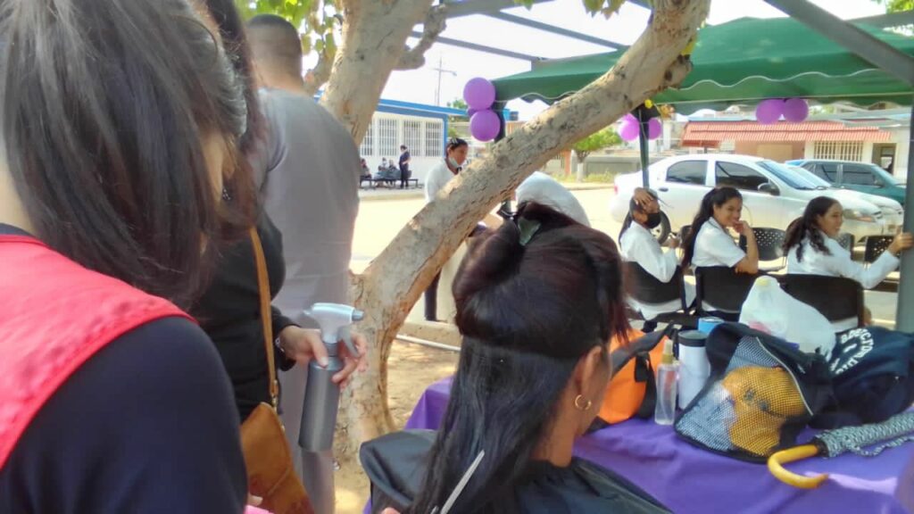 Wendy Sánchez, coordinadora de Educación para el Trabajo del IMCEC, informó que el objetivo de Fortaleza Social es contribuir al desarrollo social mediante las jornadas que se realizan en las comunidades y, a la vez, promover que los participantes de los cursos de barbería y peluquería pongan sus conocimientos en práctica. En esta oportunidad se beneficiaron 70 marabinos con sus cortes de cabello.