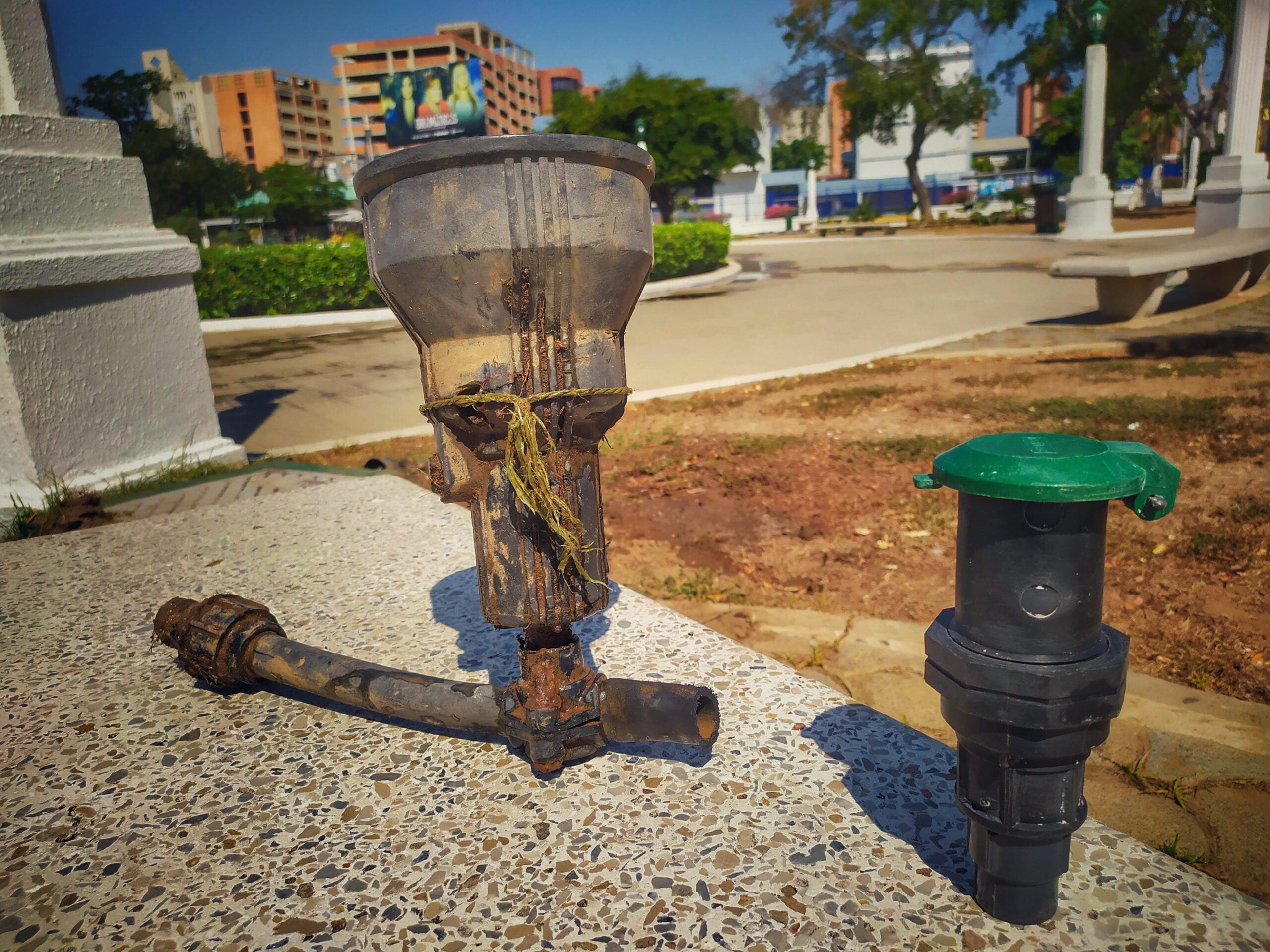 Este sistema de riego de la Plaza de la República estará conectado al pozo de agua dulce que la surte para garantizar el riego de la grama