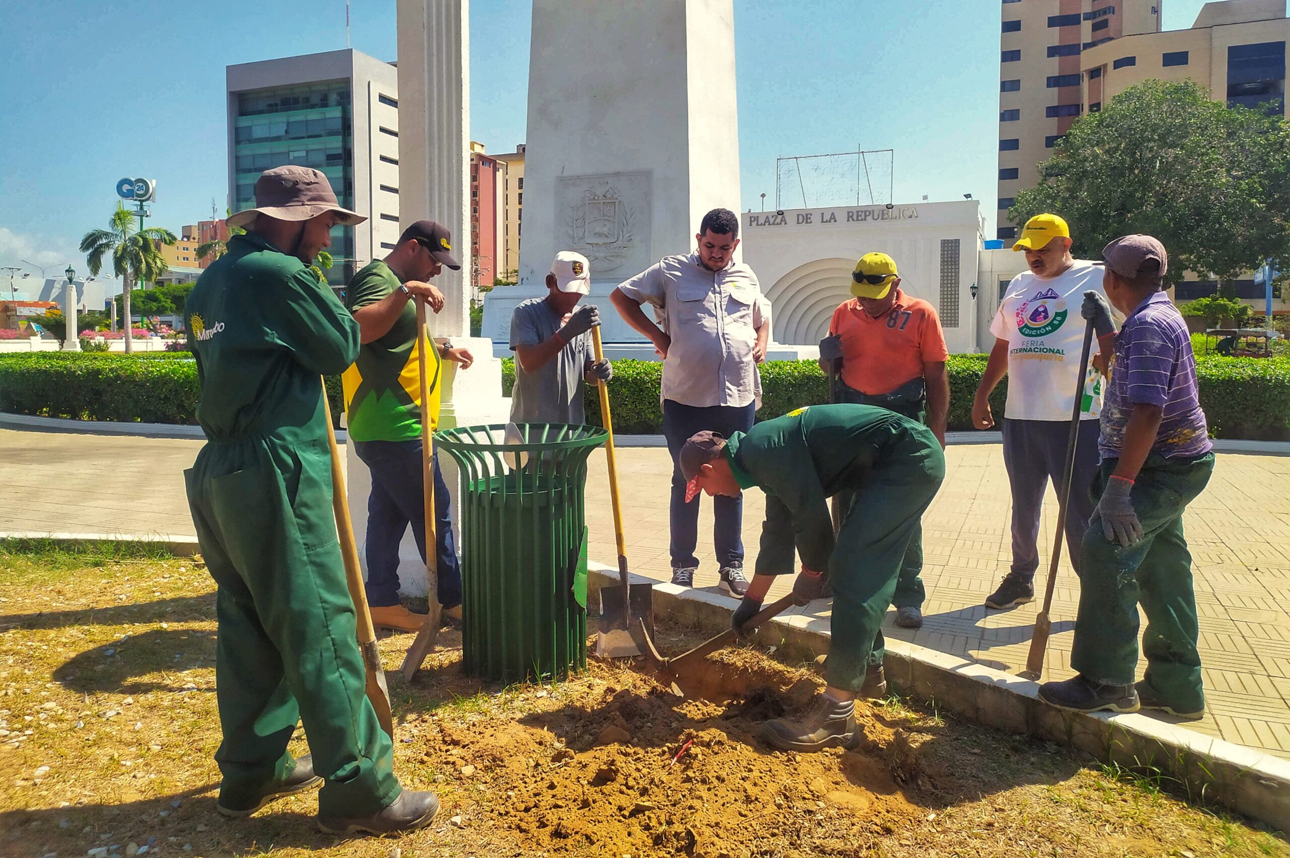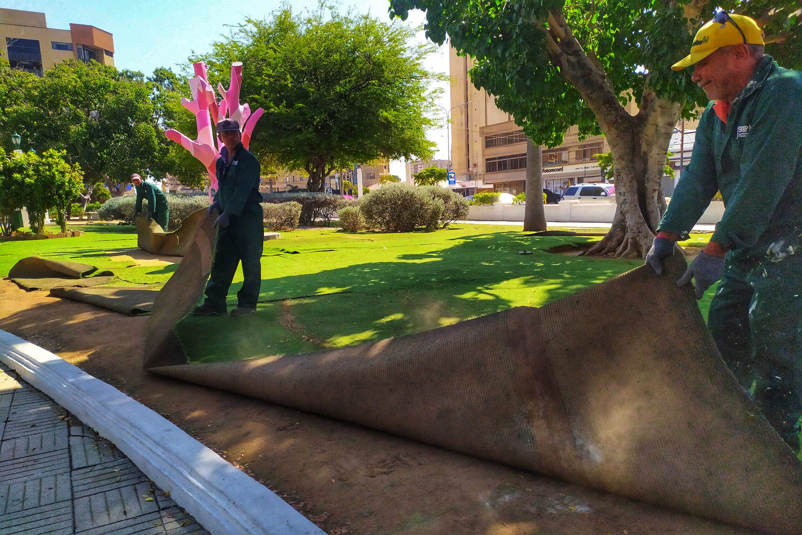“Se iniciaron los trabajos realizando remoción de la grama sintética, ubicada en las áreas verdes de la plaza de Republica, para luego así proceder a implementar el sistema de riego por aspersión que nos permitirá volver a tener la grama natural en este icónico espacio y así contribuir con el Plan Maracaibo Verde”, informó Caracciolo Boscán, director de Sedepar.