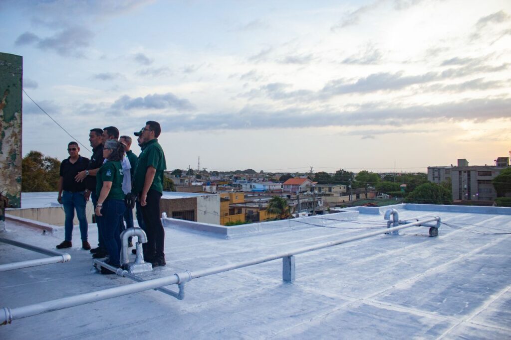 Entre los trabajos realizados para la rehabilitación de la azotea del Cajuil se encuentran: remoción del manto y pendiente, colocación de pendiente y manto nuevo y aplicación de pintura aluminizada en un total de 538 metros cuadrados.