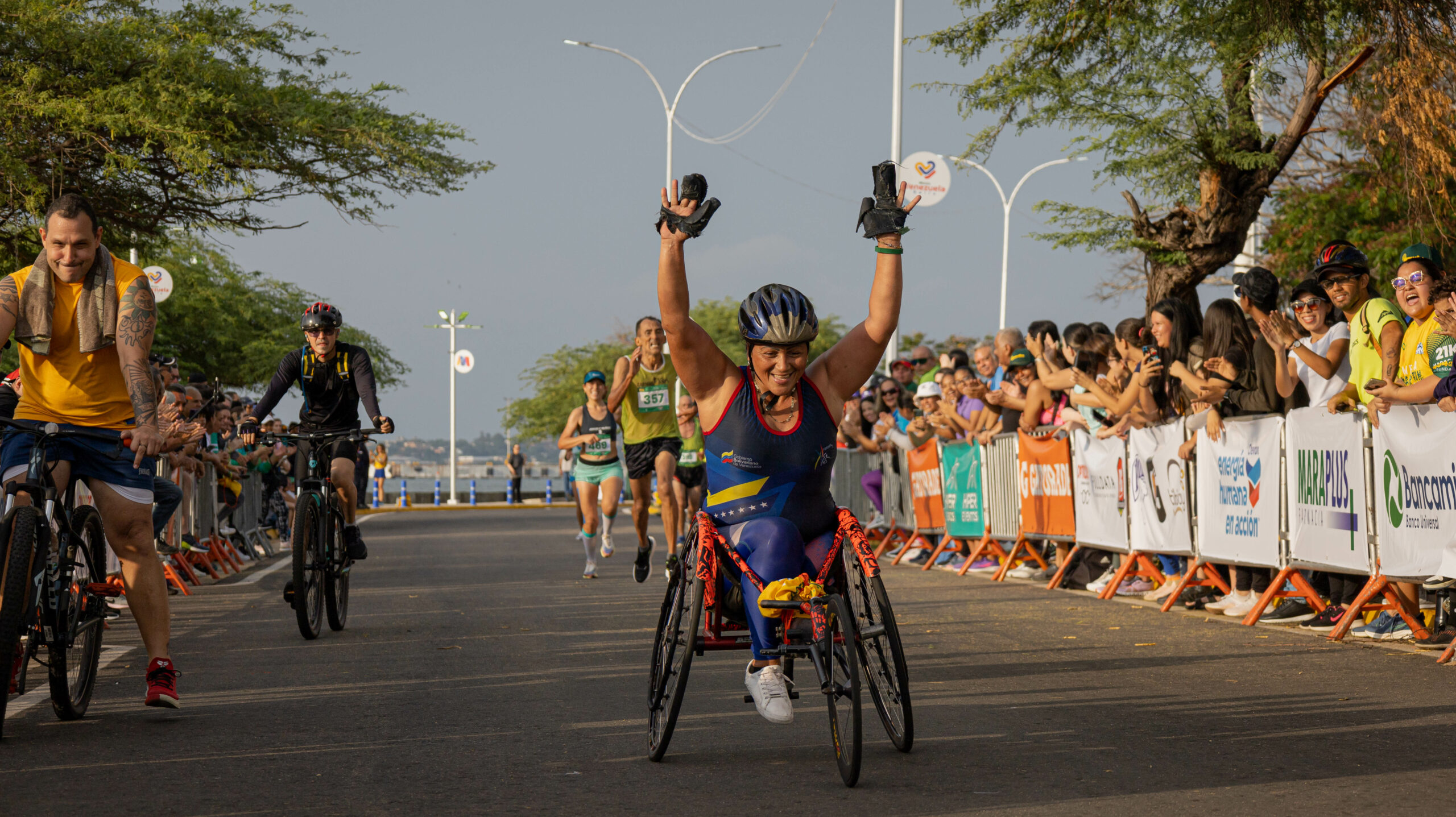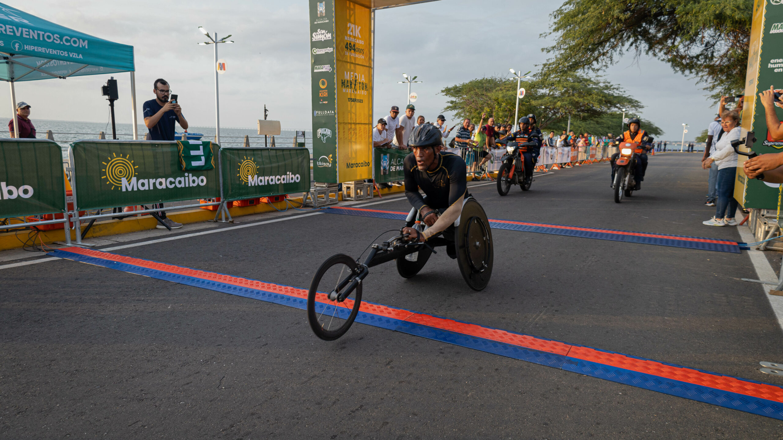 El primero en llegar a la meta entre los 1113 inscritos en la competencia, es Alexis Carbarcas, un atleta caraqueño de 43 años con movilidad reducida que cumplió el recorrido en 56:33 minutos con un ritmo de 2:42 minutos por kilómetro. Carbarcas, luego de haber participado más de 15 veces en la competencia en Maracaibo, en 2022, obtuvo el segundo lugar y para 2023 superó su propia marca al obtener el primer lugar en movilidad reducida.