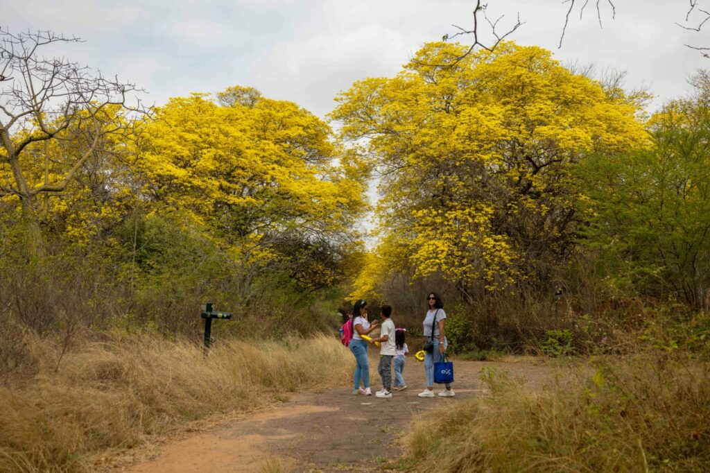El viaje comienza en la estación del Tranvía, en el Parque Vereda del Lago, donde familias, parejas y grupos de amigos se agrupan con entusiasmo. A medida que el vagón avanza entre los majestuosos ‘Palo de Arco’, las sonrisas se multiplican y las cámaras se preparan para capturar cada instante de este espectáculo natural. La emoción es palpable; todos quieren ser parte de esta experiencia única.