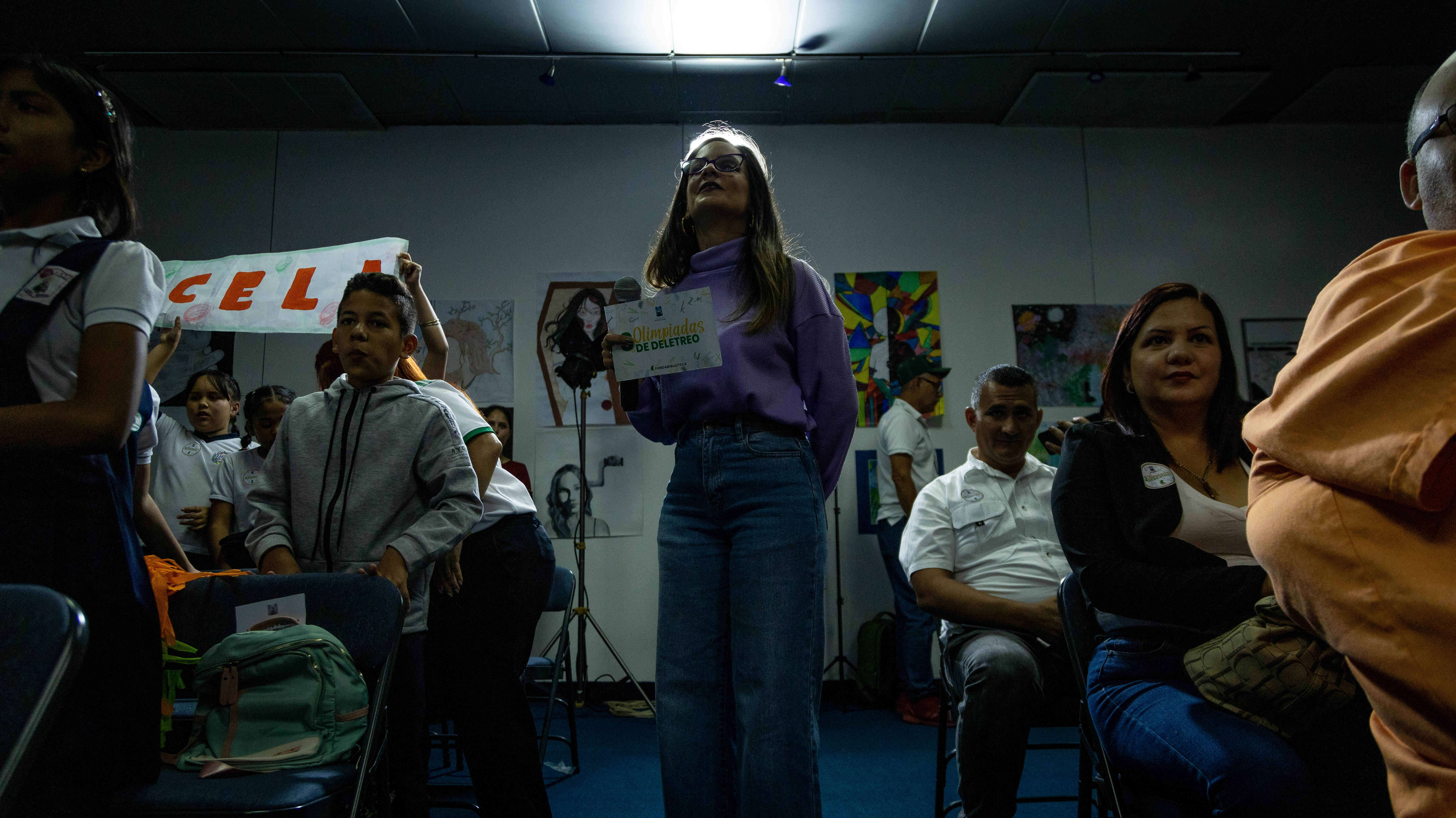 A diferencia de Gabriela, Karlys Díaz, casi no habló. Se limitó a tomar con tranquilidad las pequeñas tarjetas verdes que reposaban en un bolw en el centro del escenario y a deletrear perfectamente sus palabras. La niña de 10 años, alumna de 5to grado de la Unidad Educativa Privada Madre de la Candelaria, parroquia San Isidro; aseguró que aprendió “nuevas palabras y su significado”.