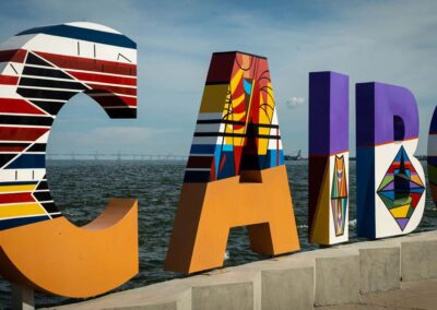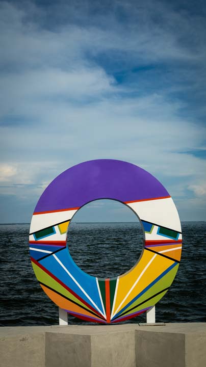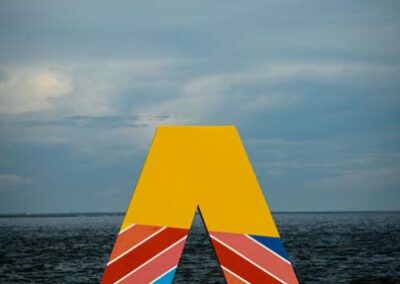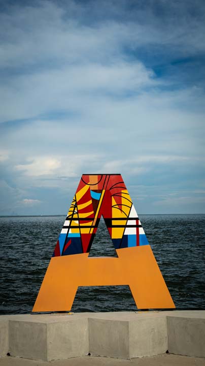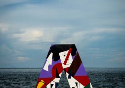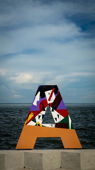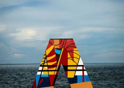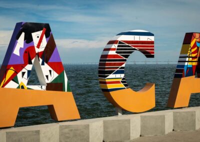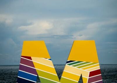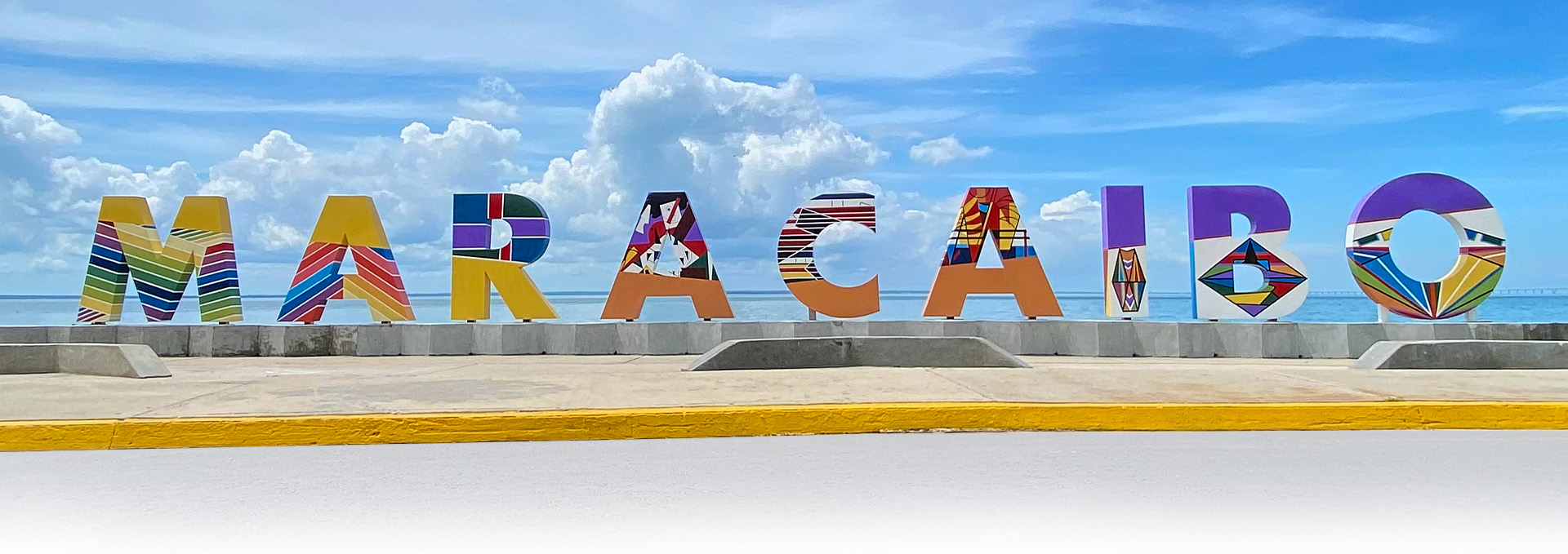 LAS 9 LETRAS CORPÓREAS QUE CONFORMAN EL NOMBRE MARACAIBO DEL PARQUE URBANO VEREDA DEL LAGO FUERON EL LIENZO PARA HOMENAJEAR A TRES ARTISTAS PLÁSTICOS VENEZOLANOS: ENDER COLINA, PEDRO PIÑA; AMBOS MARABINOS Y FRANCISCO BELLORÍN, DE CARIPITO, ESTADO MONAGAS, ADOPTADO POR LA TIERRA ZULIANA.
