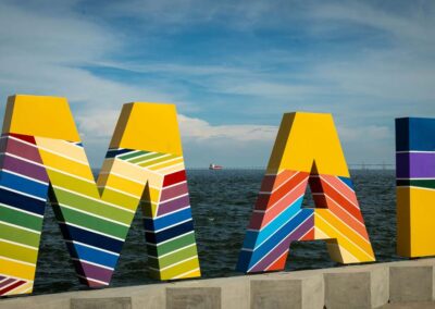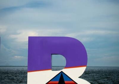 Tres de las letras corpóreas que conforman el nombre MARACAIBO (MAR) del parque urbano Vereda del Lago fueron el lienzo para homenajear al artista plástico venezolano PEDRO PIÑA.