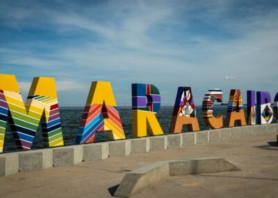 Nueve letras para siete artistas. Las letras corpóreas QUE CONFORMAN EL NOMBRE MARACAIBO DEL PARQUE URBANO VEREDA DEL LAGO se pintaron de blanco para que funcionaran como cualquier lienzo listo para recibir color. Los siete artistas, estudiantes de la Facultad Experimental de Arte de La Universidad del Zulia (FEDA-LUZ) estuvieron a cargo de Enrique Sulbarán, quien organizó los diseños ideados específicamente para cada letra en honor a los homenajeados.