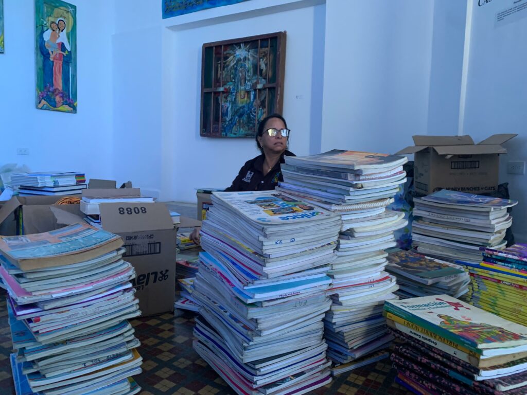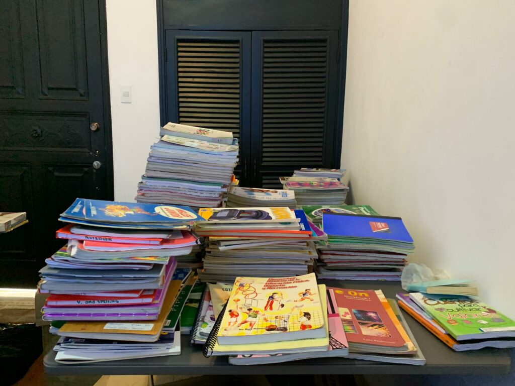 “Clasificamos e intervenimos los útiles escolares y uniformes. En el caso de los cuadernos aprovechamos las hojas que están sin uso ya sea como nuevos cuadernos o en hojas de reciclaje. Todo puede ser útil”, recalcó.