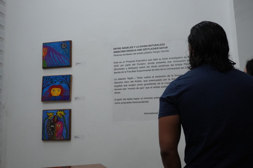 Jimmy Yánez, museólogo internacional y curador, explicó que las obras de Sergio Garrido plantean una relación entre la naturaleza, los ángeles celestiales y un submundo espiritual que pretende envolver al observador entre ficción y fabulas ancestrales.