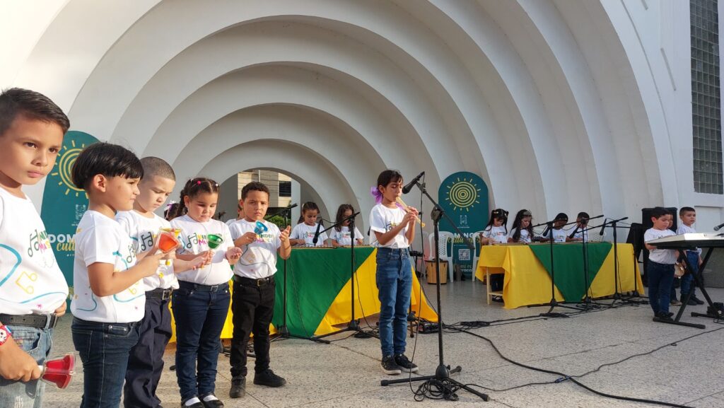 Más de 170 artistas, entre niños, jóvenes y adultos, mostraron en escena el aprendizaje que adquirieron durante el año escolar 2023-2024 en la concha acústica de la Plaza de la República, la tarde del domingo 14 de julio en el marco del programa de Domingos Culturales.
