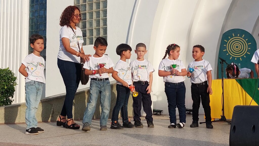 El kínder, integrado por niños entre los 4 y 6 años, dirigidos por la directora Fabiola Ferrer, realizó una presentación de campanas, teclado, flauta y xilófonos, interpretando los temas Venezuela, y Bella y Bestia Son.