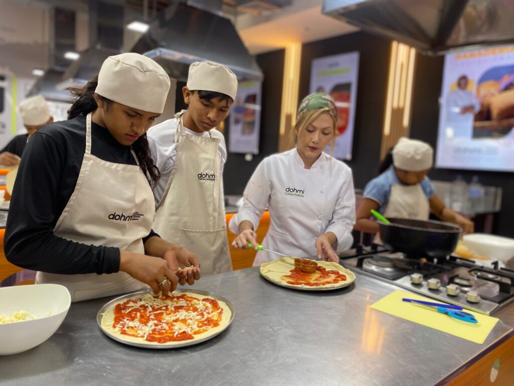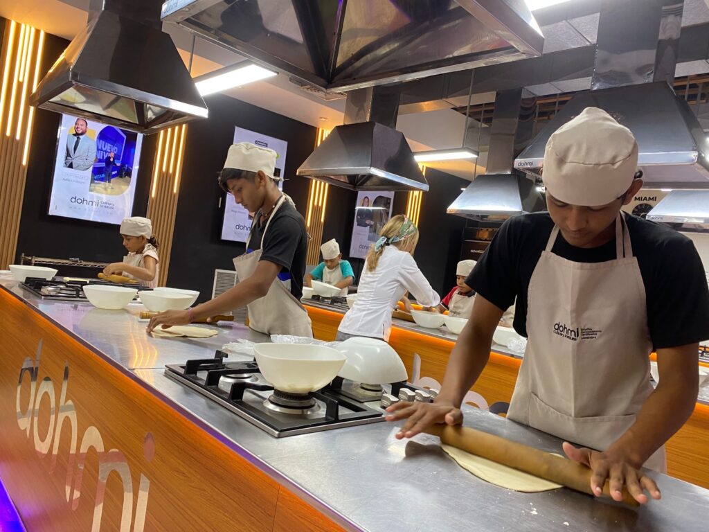 Más 10 niños, niñas y adolescentes pertenecientes a la Fundación Niños del Sol (Fundanis), fueron capacitados en el taller de cocina dictado por chefs profesionales en Dohmi Culinary Institute, donde se les brindó amplios conocimientos en el área.