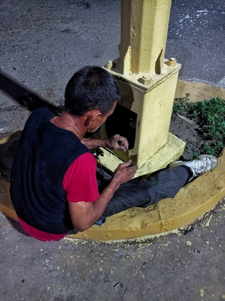 Nava Pereira se encontraba sentado sobre la caja del equipo halando con sus manos un tramo del cable eléctrico, de aproximadamente un metro de largo, desde el área interna del semáforo.