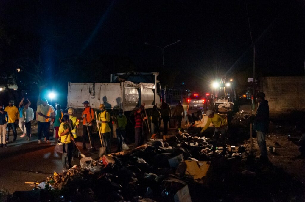 Carlos Carvajal, conductor de una retroexcavadora, agradeció el apoyo de Ramírez Colina: “Estamos aquí a esta hora con nuestro Alcalde avanzando en la recolección, estamos comprometidos y trabajamos en grupos que se despliegan desde las 6:00 de la mañana a 4:00 de la tarde, y luego de 6:00 de la tarde a 12:00 de la madrugada”.