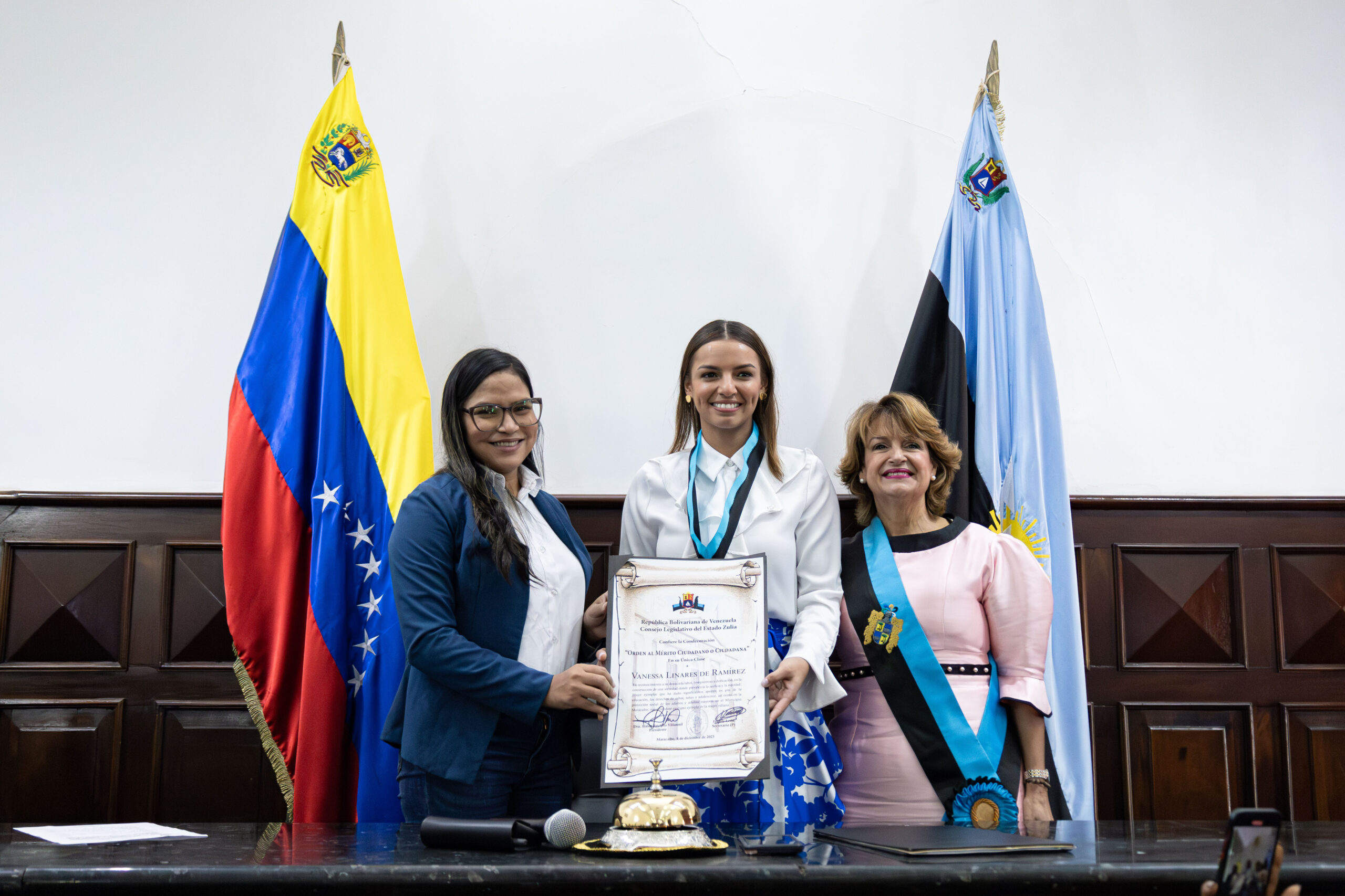 El Consejo Legislativo del estado Zulia (Clez) condecoró a Vanessa Linares de Ramírez, primera dama del municipio Maracaibo, con la “Orden al Mérito Ciudadano” en su Única Clase por su ardua labor en la defensa de los derechos de los niños en la ciudad.